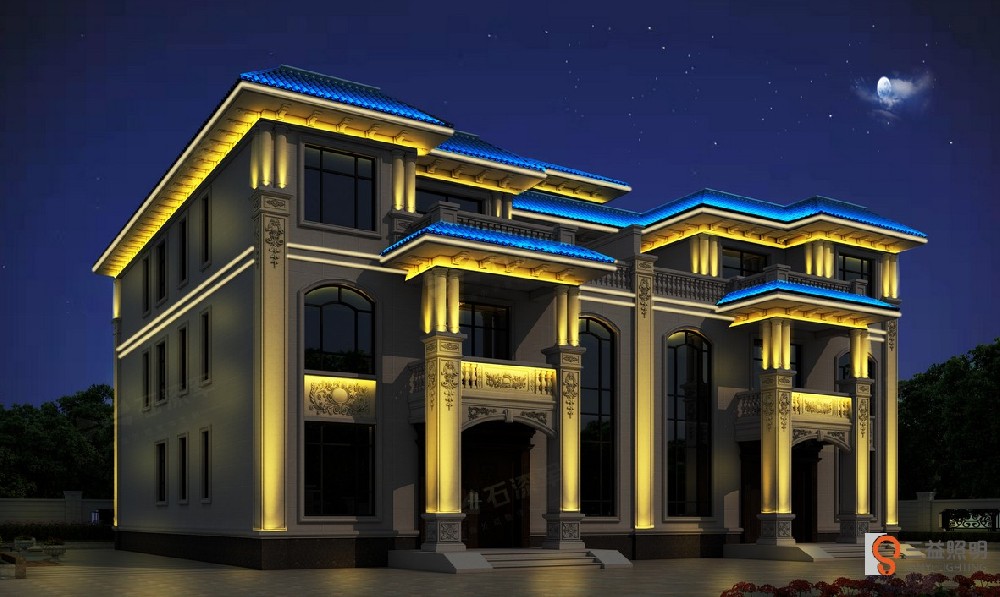 湖南益陽(yáng)市滄水鋪碧云峰胡總別墅設(shè)計(jì)方案,采用洗墻燈,線條燈,瓦楞燈,投光燈等,營(yíng)造出鄉(xiāng)村別墅夜景燈光效果。