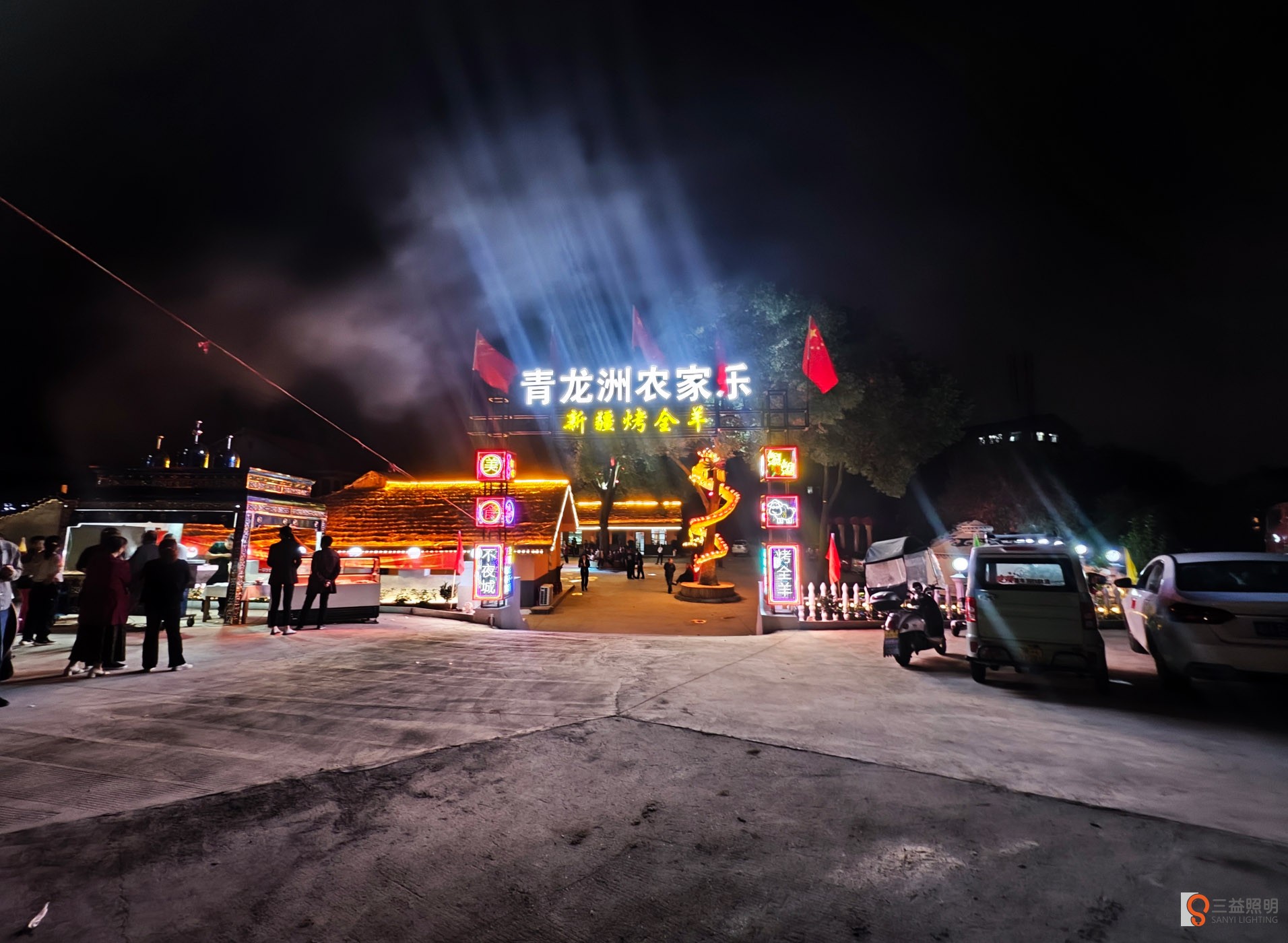 青龍洲農(nóng)家樂,經(jīng)營(yíng)農(nóng)家菜,新疆燒烤,烤全羊等,經(jīng)過線條燈,洗墻燈,瓦燈,發(fā)光字,網(wǎng)紅門樓等,營(yíng)造出益陽(yáng)一處新的網(wǎng)紅打卡地。