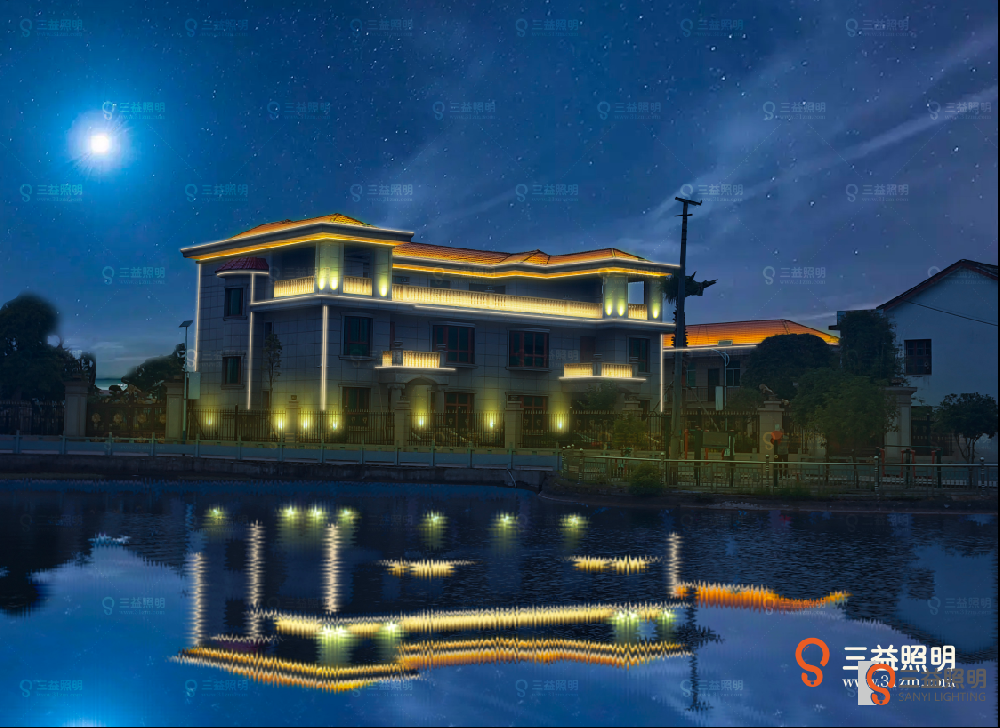 此別墅燈光根據(jù)別墅造型外觀進(jìn)行設(shè)計(jì),使別夜晚墅輪廓更加突出,通過燈光的設(shè)計(jì)和布置,能夠讓別墅在夜幕中更加美觀、氣派,提升整體的視覺效果。