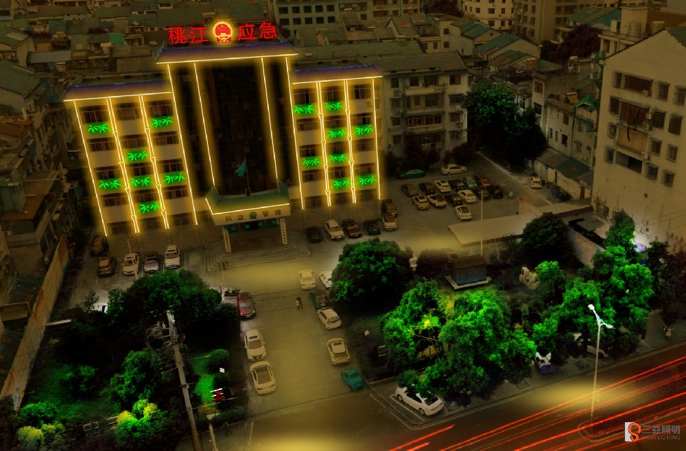 桃江縣公安交警大隊(duì)、事故入處理中心外墻燈光設(shè)計(jì)方案,采用線條燈勾勒大樓輪廓。